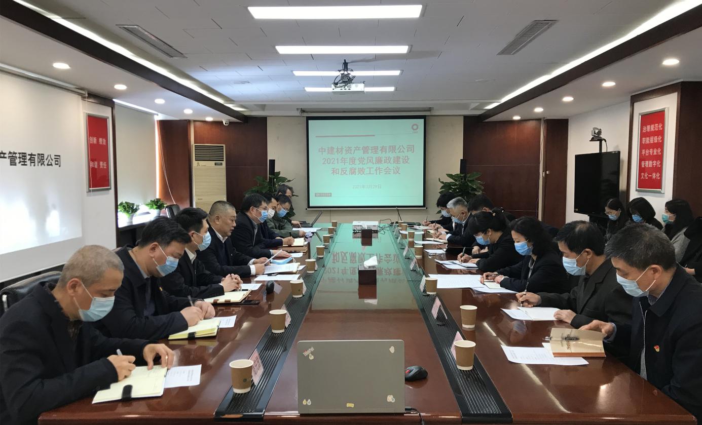 2021年3月29日,中建材资产管理有限公司党委召开了2021年度党风廉政建设和反腐败工作会议,会议传达集团党风廉政建设和反腐败工作会议部署要求,总结2020年工作,部署2021年重点工作任务。资产管理公司党委书记、执行董事、总经理高则怀出席会议并讲话,公司党委副书记、纪委书记赵庆辉作了题为《锲而不舍加强正风肃纪 持之以恒推进日常监督 为公司转型发展提供有力保障》的工作报告。